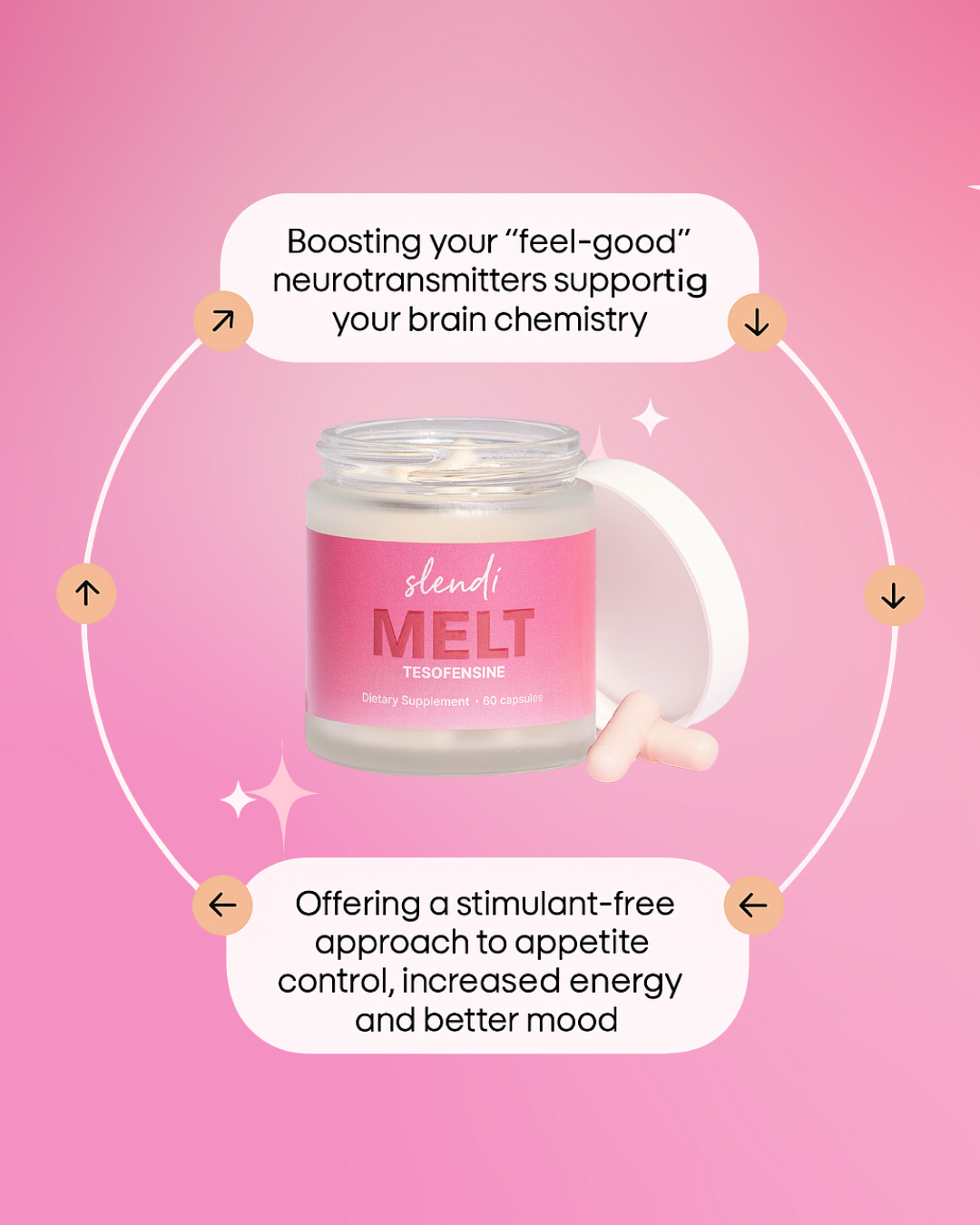 Slendi is your glow-up in a bottle. Powered by real science (hello, tesofensine) and made for women who are done playing small, we’re here to boost your energy, sharpen your focus, and help you feel like you, but with main character energy. No crash diets. No crazy promises. Just smart, feel-good support to help you stay that girl effortlessly.